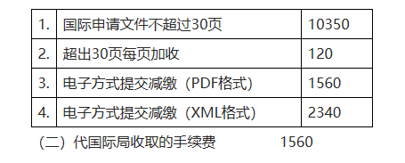PCT申請國際階段費用標準 (金額單位:人民幣 元)